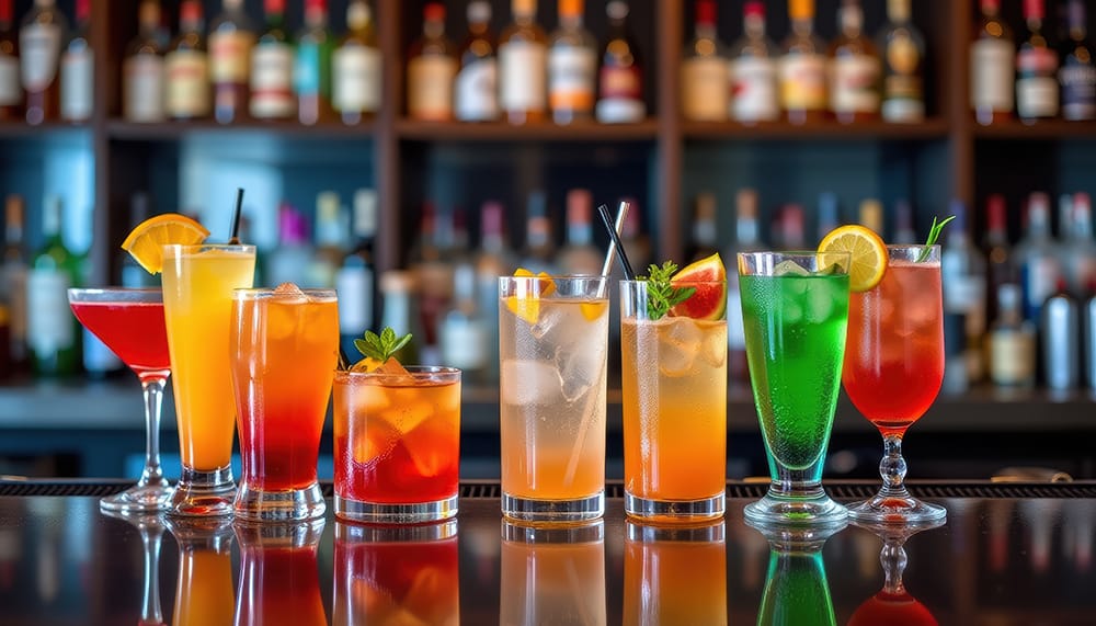 - Coquetéis clássicos e drinks mistos com destilados da casa